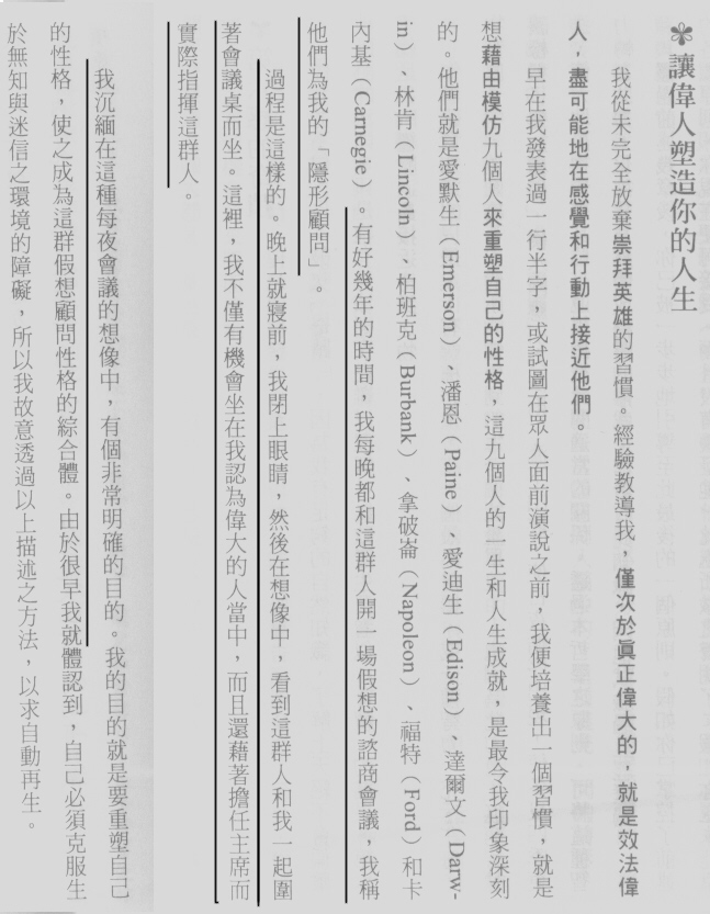 ®³¯}±[¡D§Æº¸¡]Napolean Hill 1883-1970¡^¡A¦~«C®É¬°°OªÌ¡A¾ÚºÙ±o¨ì¬ü°ê¡u¿ûÅK¤j¤ý¡v¦w¼w¾|¡D¥d¤º°òªºÁܬù¡AµÛ¤â¾ã²z¤@®M¤H¤H¥i¥Îªº¡u¦¨¥\¾Ç¡v¡C©ó¬O±Ä³X¤F¤¦Ê¦h¦ì¬ü°ê¡u¦¨¥\¤Hª«¡v¡A¨Ò¦p·R}¥Í¡BºÖ¯S¡B¬¥§Jµá°Çµ¥µ¥¡A³Ì«á¾ã²z¬°¦h¥»¦¨¥\¾Ç¥¨µÛ¡A¡m«ä¦ÒP´I¡n¬O¨ä¤¤³Ì¸g¨å¡B³ÌºZ¾P¤§§@¡C¤@¤E¤T¹s¦~¥N¡A¥L§ó¥X¥ôù´µÁ`²Îªº¸gÀÙÅU°Ý¡A¨ó§Uù´µºÖ±À¦æ·s¬F¤ª¤ª¡C¤£¥i¤£ª¾¡A´N¦b³o®É¡Aù´µºÖÁ`²Î¦b¤@¤¸¬ü¶r¤§¤W¡A©ñ¤W¤F¬ü°ê°êâ¡]I±¡^¡G