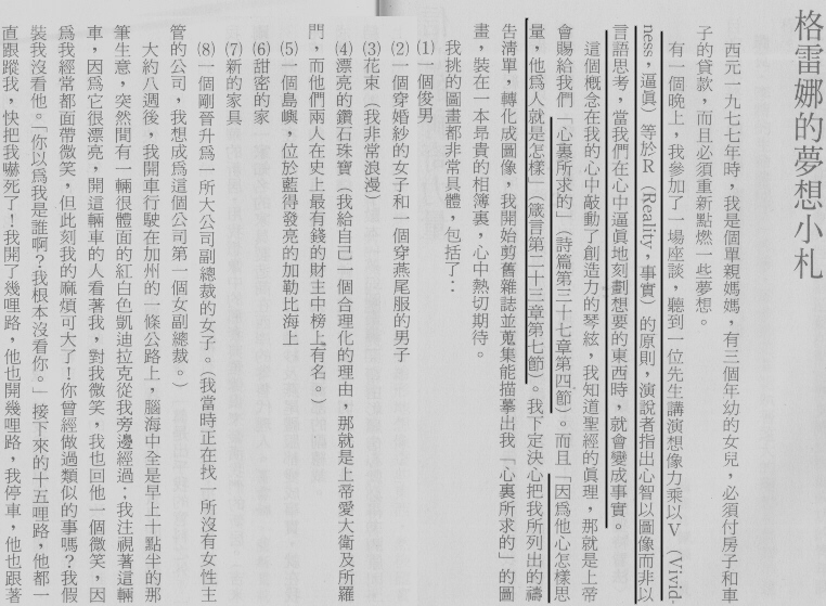 ¶1¡G¹Ú·Q¦b¤Hªº¤ß¤¤¡A¬O¤@ªÑ¥Í©Rªº¬¡¤O¡A¨Ì·Ó¤w¬Gªº¨¦¤f¶®¬K¥ý¥ÍªºµÛ§@¡m¥Í©Rªº¯u¬Û¡nùØ»¡¡A¤£½×¹Ú·Q¬O¤j¬O¤p¡A¥unªÖ§V¤O¡A³£·|¥Ñ¹Ú·Qªº¶¥¬qÅܦ¨Ä@±æ¡A³Ì«á¦¨¬°¨Æ¹ê¡C¡K¡K§Ú³Ð³]¤K¨Õ¦ñ¦Ê³f¥ø·~¡A¥Ñ¹s°µ°_¡A±q¨S¦³°µ¨ì»õ¸U¡A¥þ¾Ì¨¦¤f¶®¬K¥ý¥Í»¡ªº«H©À¡A¦]¬°«H©À¦b¤ß¤¤§Î¦¨¤O¶q¡A¤ä«ù§Ú¥h³v¨B¹ê²{§Úªº¹Ú·Q¡C